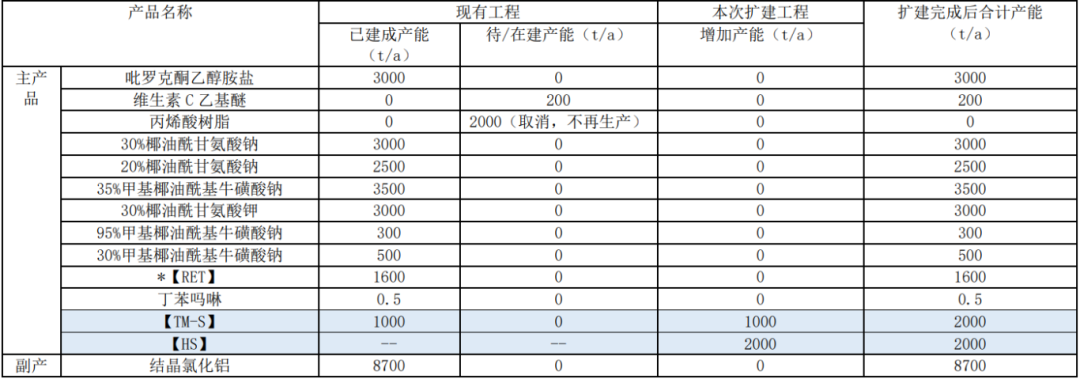 项目名称:年产2000吨HS和年产1000吨S高端个人护理品项目;