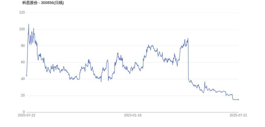 2024年5月15日,科思股份的市值巅峰达到152.79亿元,股价也顺应升至90.23元。而至7月21日收盘,科思股份的股价为15.13元,市值为71.97亿元,相比峰值时期市值减少80.82亿元,市值蒸发了52.90%。