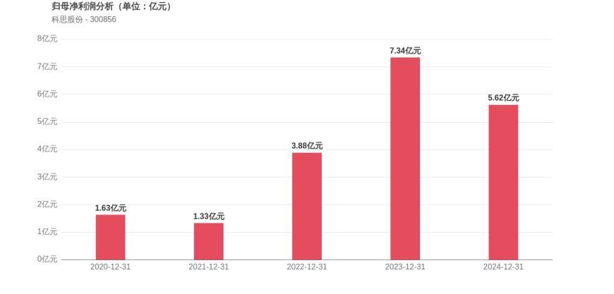 利润角度分析,2020年科思股份实现归母净利润1.63亿元,2024年5.62亿元。公司盈利能力显著提升,但2024年出现下滑。