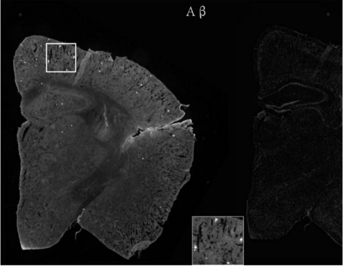 [0015]图1为灌胃生理盐水组的小鼠大脑切片Aβ染色图