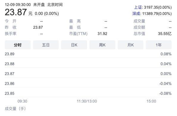 从市场公开数据来看,公司今日(2022年12月8日)收盘集中竞价阶段以23.87元/股的价格成交约94,200股,成交额约225万元。公司当日成交额合计约4,500万元,2022年12月以来(共6个交易日)成交额累计约27,163万元。今日收盘集中竞价成交金额占当日成交额的约5%,占2022年12月以来(共6个交易日)成交额的约0.8%。今日收盘集中竞价的成交额与公司正常交易的成交额相比具有较大差距。