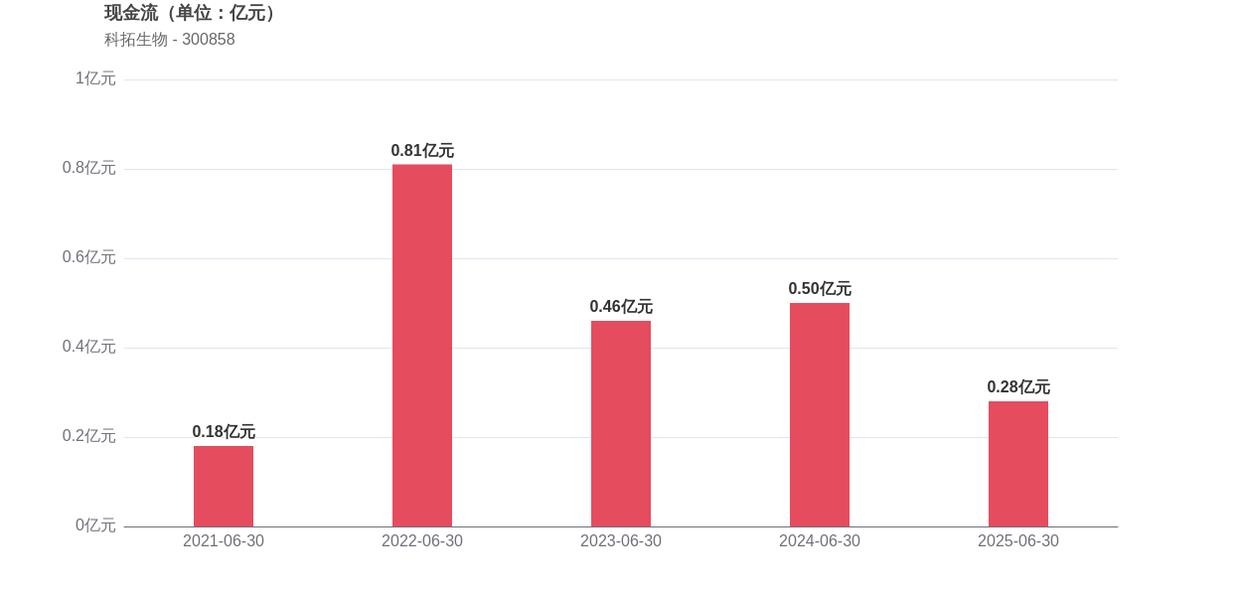 在经营稳健性方面,科拓生物面临现金流收缩压力,存货周转天数为98.42天,较2024年上半年下降了8.48%,表明存货管理效率有所提升。经营活动产生的现金流净额为0.28亿元,相比2024年同期的0.5亿元下滑了0.22%。此外,2025年上半年的资产负债率为7.84%,同比增长了3.37个百分点。