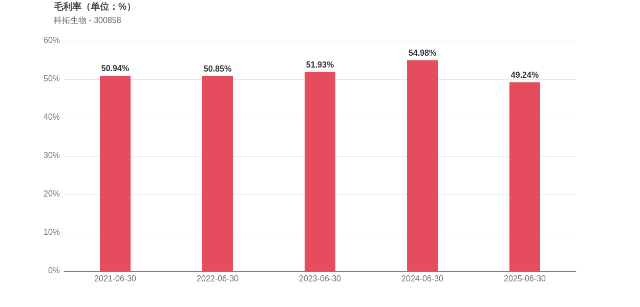 在2025年上半年,科拓生物的经营业绩呈现营收增长但利润下滑的态势,实现营业收入1.63亿元,同比增长18.32%,而归母净利润0.41亿元,同比下滑5.31%。