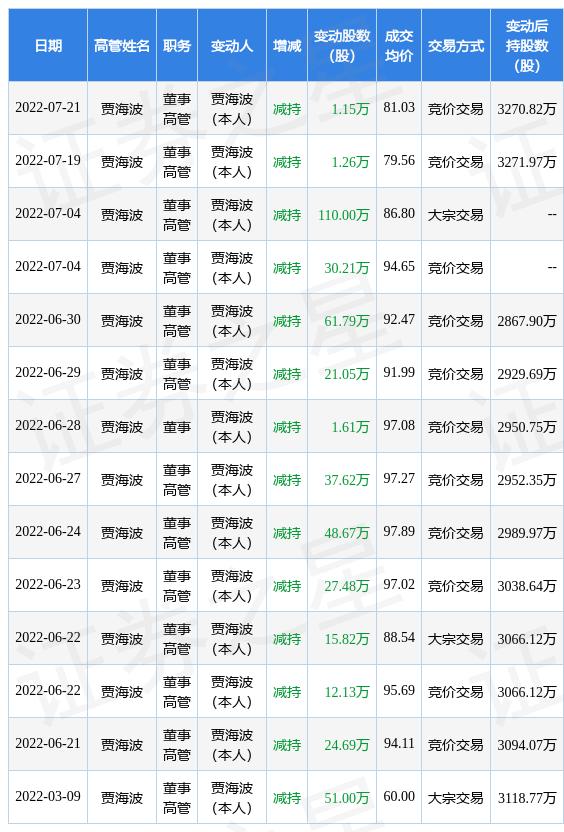 证券之星讯,根据7月22日市场公开信息、上市公司公告及交易所披露数据整理,美畅股份(300861)最新董监高及相关人员股份变动情况:2022年7月21日公司董事,高管贾海波共减持公司股份1.15万股,占公司总股本为0.0024%。变动期间公司股价下跌2.26%,7月21日当日收盘报76.38元。