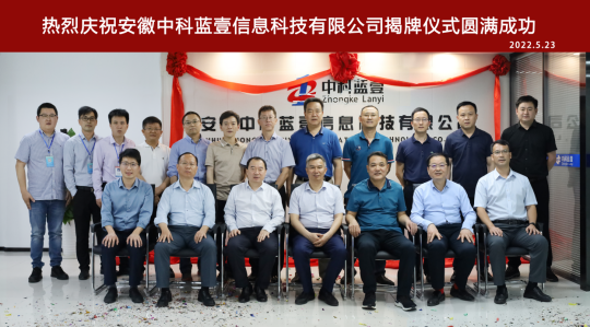 2022年5月23日上午,安徽蓝盾光电子股份有限公司与中国科学院合肥物质科学研究院,联合成立的高新技术企业—安徽中科蓝壹信息科技有限公司,在合肥市蜀山区跨境产业园隆重举行公司揭牌仪式。