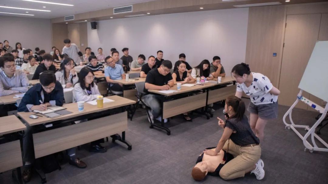 活动现场,安徽省宣教中心的讲师凭借丰富的专业知识和实践经验,以通俗易懂、生动有趣的讲解方式,为员工们带来了一场知识盛宴。在突发事件应急处理环节,讲师着重讲解了心肺复苏、人工呼吸、海姆立克急救法等急救知识,并通过人体模型进行现场操作演示,详细分解每一个步骤,确保员工们能够准确掌握操作要领。