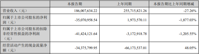 蓝盾光电(300862.SZ)近日发布2025年半年度报告。今年上半年,公司实现营业收入1.86亿元,同比减少27.26%;归属于上市公司股东的净利润-3507.10万元,同比减少1,877.03%;归属于上市公司股东的扣除非经常性损益的净利润-4142.41万元,上年同期为-317.29万元;经营活动产生的现金流量净额-3437.58万元,上年同期为-6617.35万元。