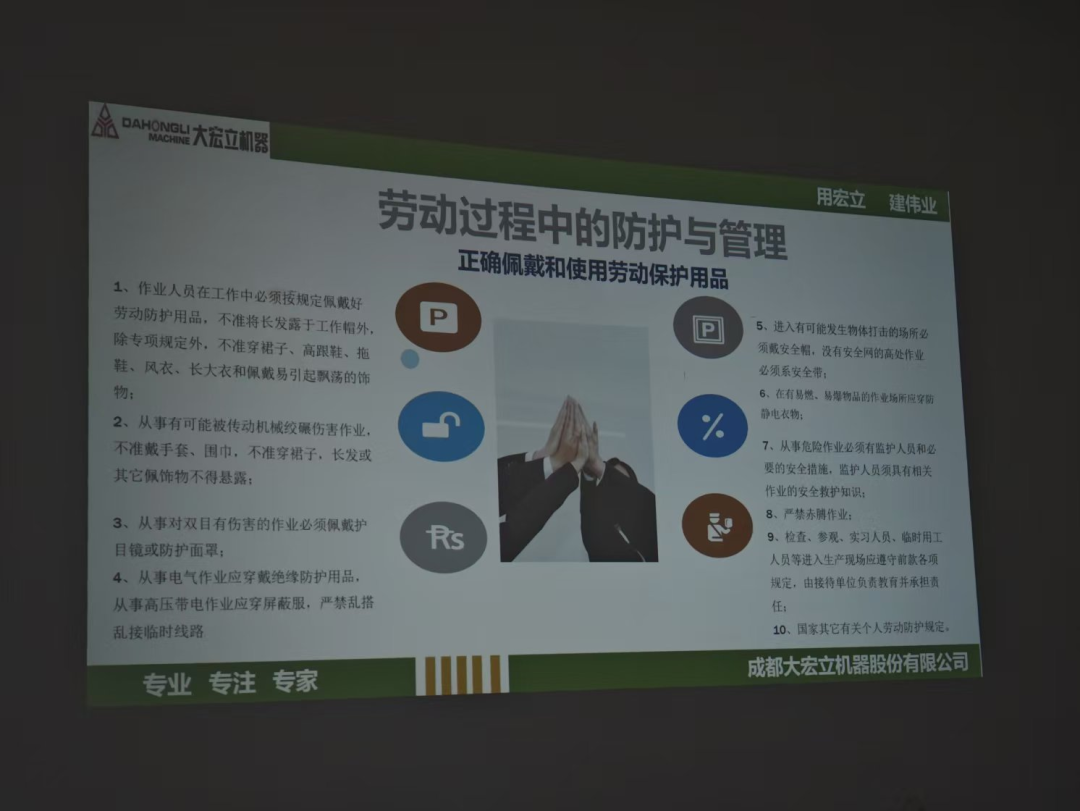 在工作生产中,安全永远是第一位。成都大宏立机器股份有限公司始终将员工与合作伙伴的安全置于首位,我们深知:安全生产是企业生命线,更是对每个家庭的承诺!