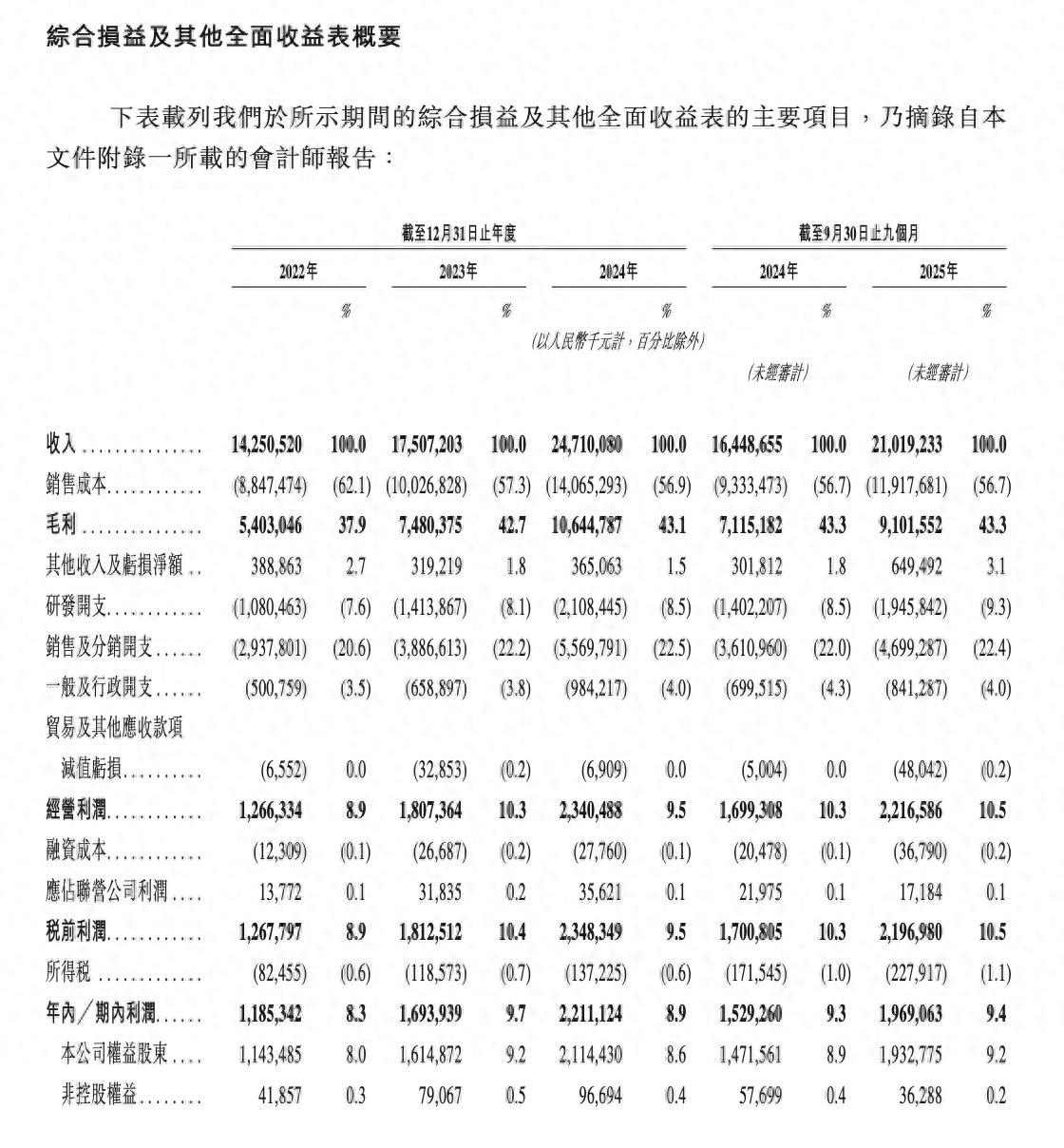 据招股书,2022年-2024年, 安克创新 实现收入分别为142.51亿元、175.07亿元、247.1亿元;公司权益股东应占年内利润分别为11.43亿元、16.15亿元、21.14亿元。