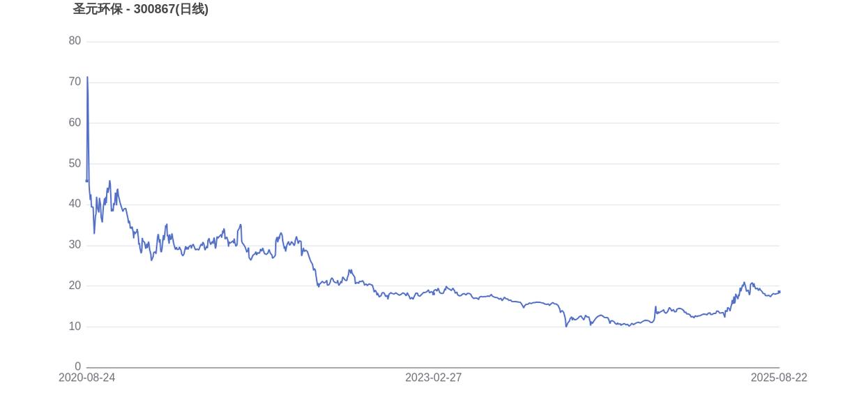 圣元环保自2020年8月24日上市至今,已迎来5周年。从上市首日收盘价为45.78元、市值124.40亿元,到如今市值达到50.44亿元。