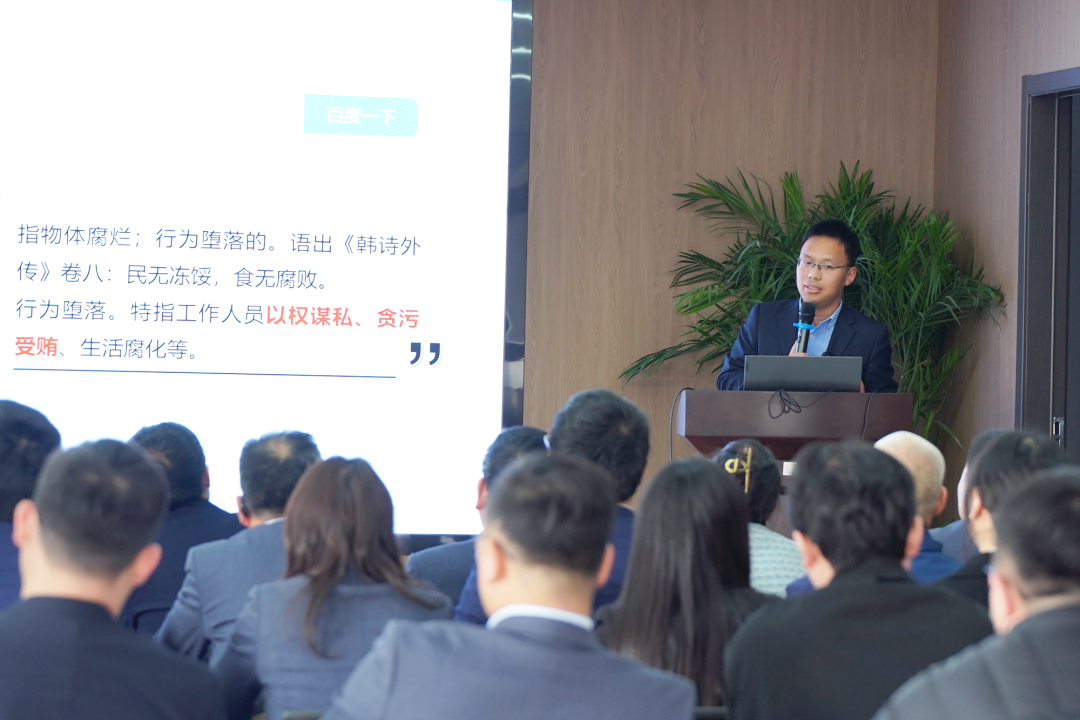 会上,审计部经理贾亚伟面向全员开展了一场内容扎实、贴近实际的廉洁体系培训活动,他通过详实的数据和具体的案例,生动解读了廉洁从业的必要性和紧迫性,引领全体员工提升职业道德素养。随后,他主持了一场庄重肃穆的廉洁承诺仪式,使每一位与会者深深体会到廉洁自律精神的厚重力量。