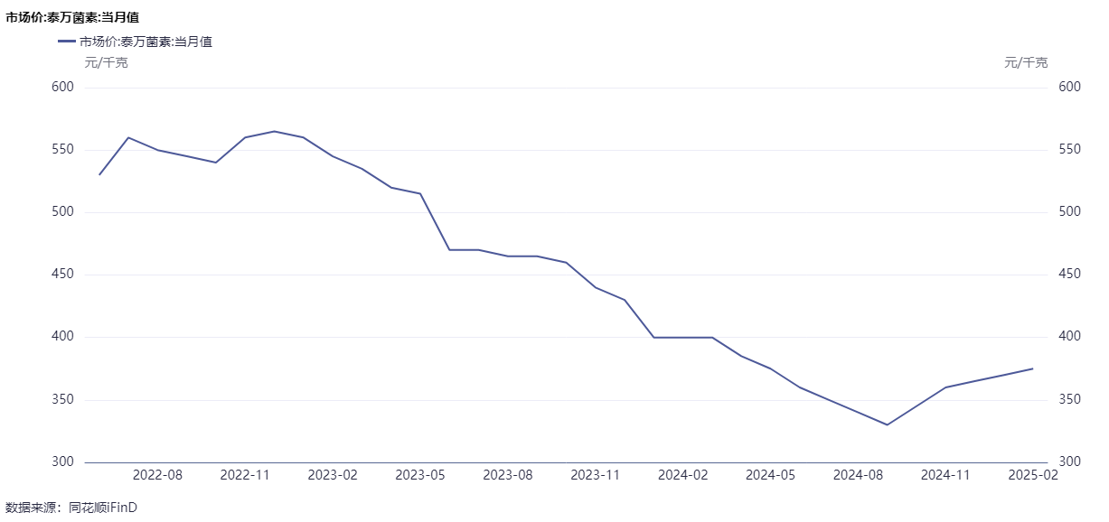 值得一提的是,回盛生物于3月18日回应投资者提问时表示,今年以来,泰乐菌素原料药市场价格受供需关系及前期超跌影响,有一定程度上涨修复,现阶段相对平稳。