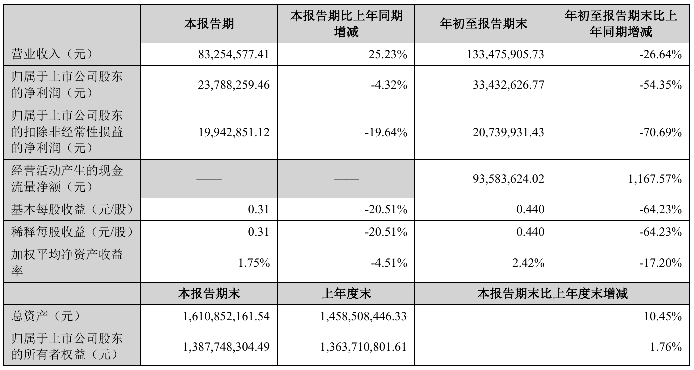 挖贝网10月25日,捷强装备(300875)近日发布2021年前三季度报告,报告期内营业收入133,475,905.73元,同比减少26.64%;净利33,432,626.77元,同比净利减少54.35%。