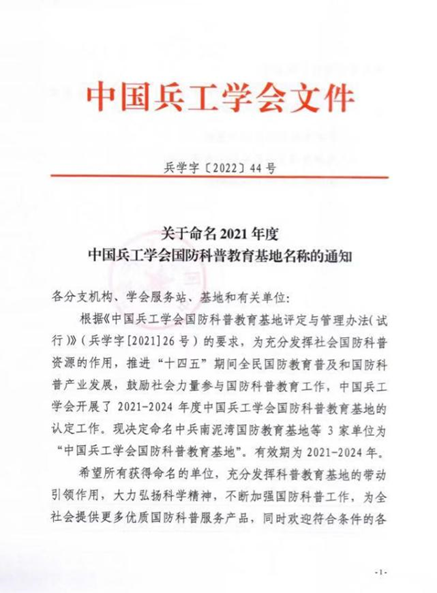 同日,中国兵工学会“关于命名2021年度中国兵工学会国防科普教育基地名称的通知”一并下发捷强装备,可谓是“双喜临门”。该通知为捷强装备面向大中小学、基地、企事业团体等扎实开展国防科普教育活动提供了依据和保证。