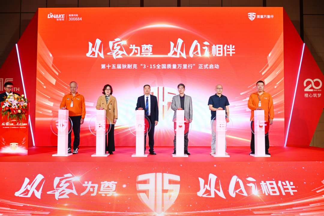 勇立潮头担使命,奋楫扬帆启新程。会上,本届活动副组长黄发扬、狄耐克制造总监蒋伟文、本届活动行动总指挥季伟平与刘梅纯秘书长、雷婕秘书长、吴承东秘书长等六位领导共同为第十五届狄耐克“3·15全国质量万里行”活动进行蓄力启动。