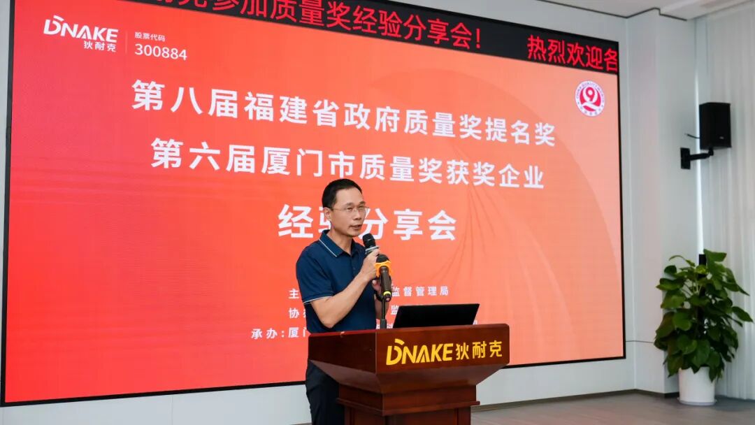 2025年9月26日,由厦门市市场监督管理局、海沧区市场监督管理局举办的质量奖获奖企业经验分享会在狄耐克总部智造园举行。狄耐克作为第八届福建省政府质量奖提名奖、第六届厦门市政府质量奖获奖企业,在会上精诚分享了公司在质量管理方面的成功实践。