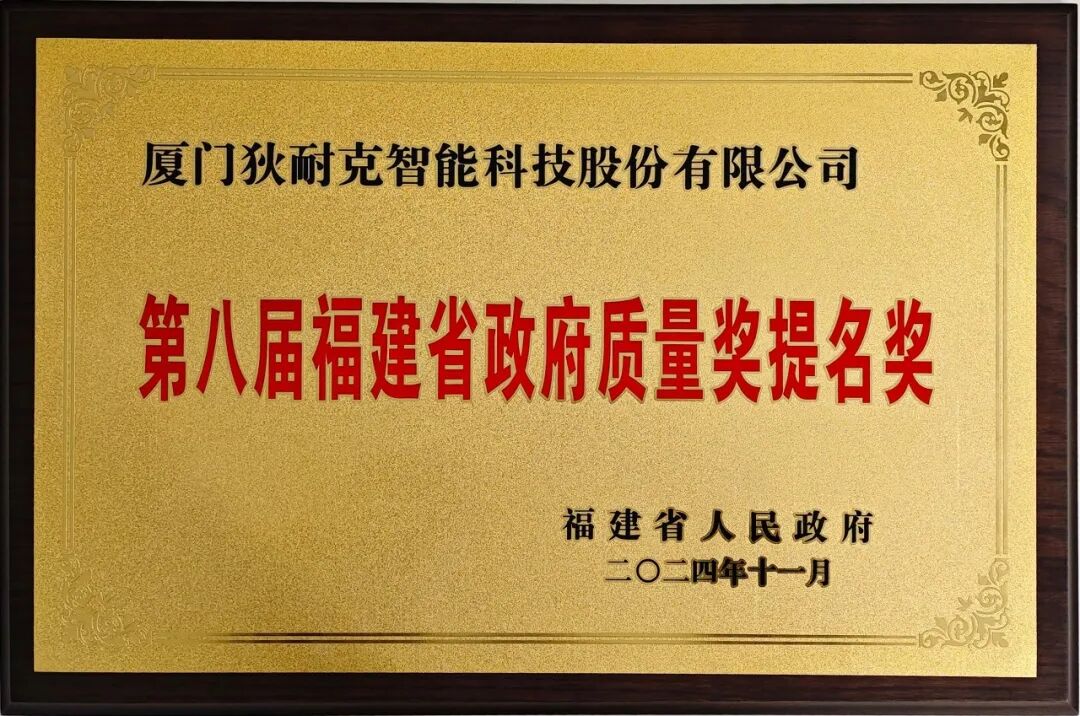 作为一家深耕智慧社区、智慧医院和健康科技领域的上市企业,狄耐克始终将质量视为企业发展的生命线。源于企业自身对质量工作的坚守,和全体员工对追求卓越品质、深化质量管理工作的全力奋斗,以及各级政府和社会各界的支持,狄耐克顺利通过了组织管理、文化构建、技术创新、品质保障、社会责任等多重考验和淬炼,在质量领域荣获省市级双重认可:2023 年 5 月,狄耐克荣获“第六届厦门市质量奖”;2024年12月,狄耐克荣获“第八届福建省政府质量奖提名奖”。