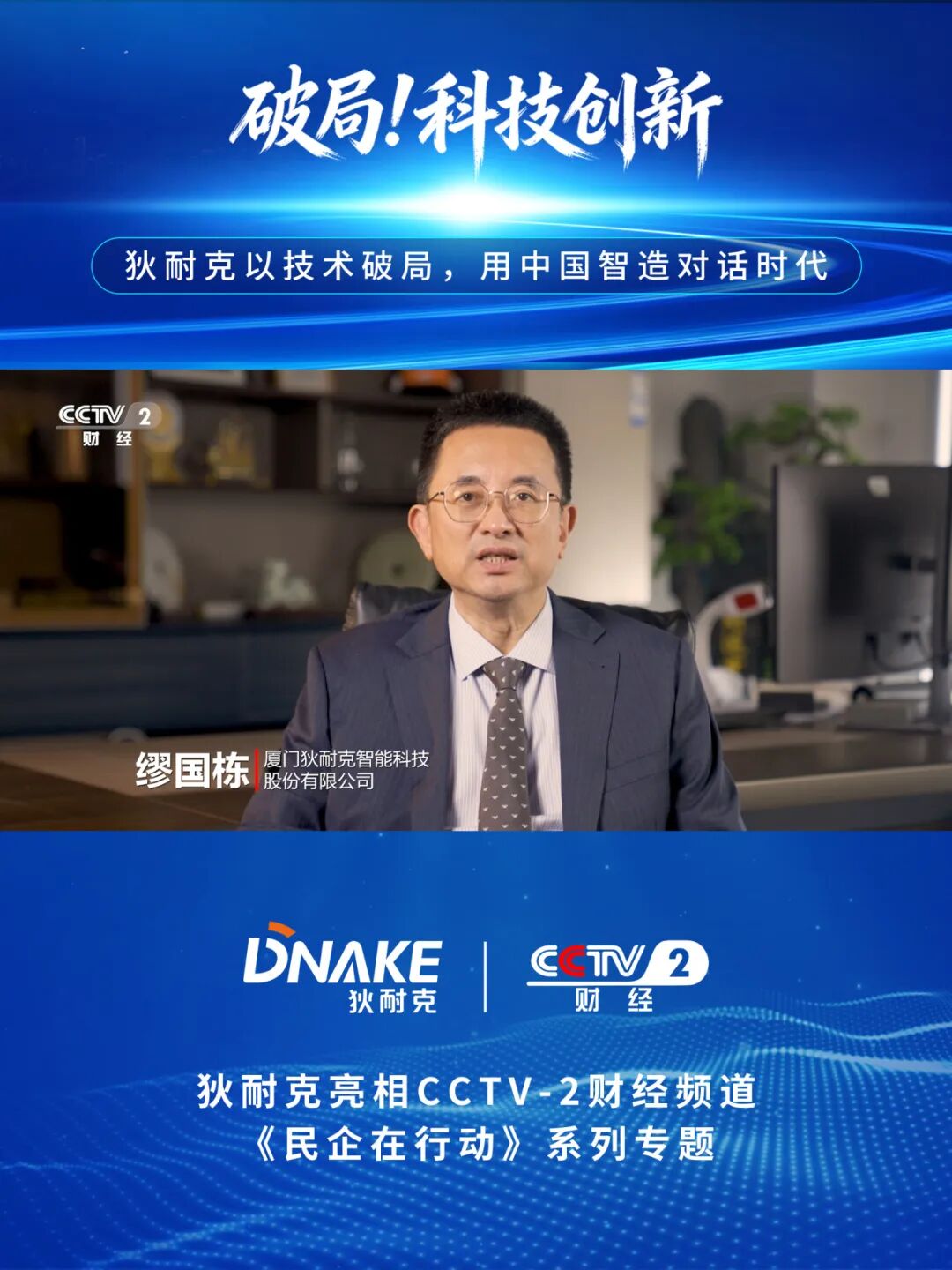 这是狄耐克继《破局!技术创新》《拓界!智慧蓝图》之后,第三次登上这一国家级财经媒体平台。