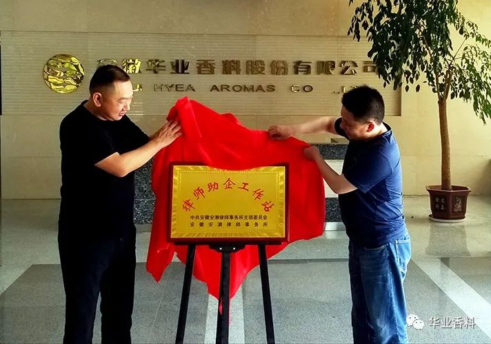 为贯彻落实安徽省“一改两为”大会精神,深入开展“法律服务进万企”活动,2022年6月17日上午11时,潜山经济开发区首家企业“律师助企工作站”在安徽华业香料股份有限公司揭牌成立。