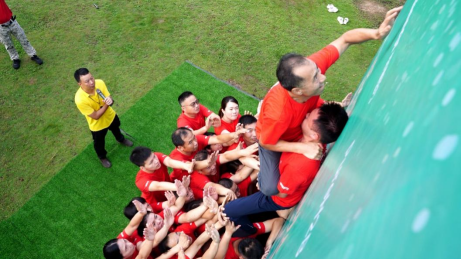 “毕业墙”的意义在于磨砺团队的协作精神,达到最终目标,只有突破大家的思想障碍,通力协作,形成强大合力,才能翻越团队面前隐形的障碍。