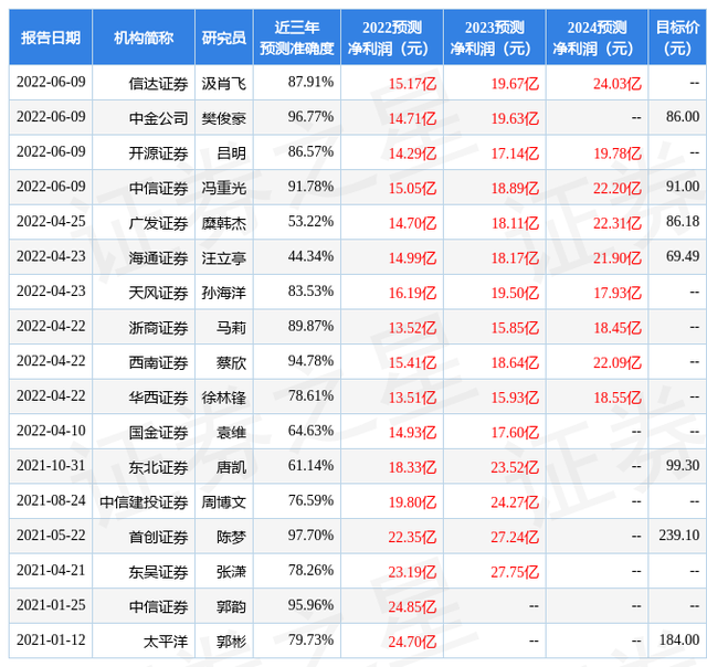 以下是详细的盈利预测信息: