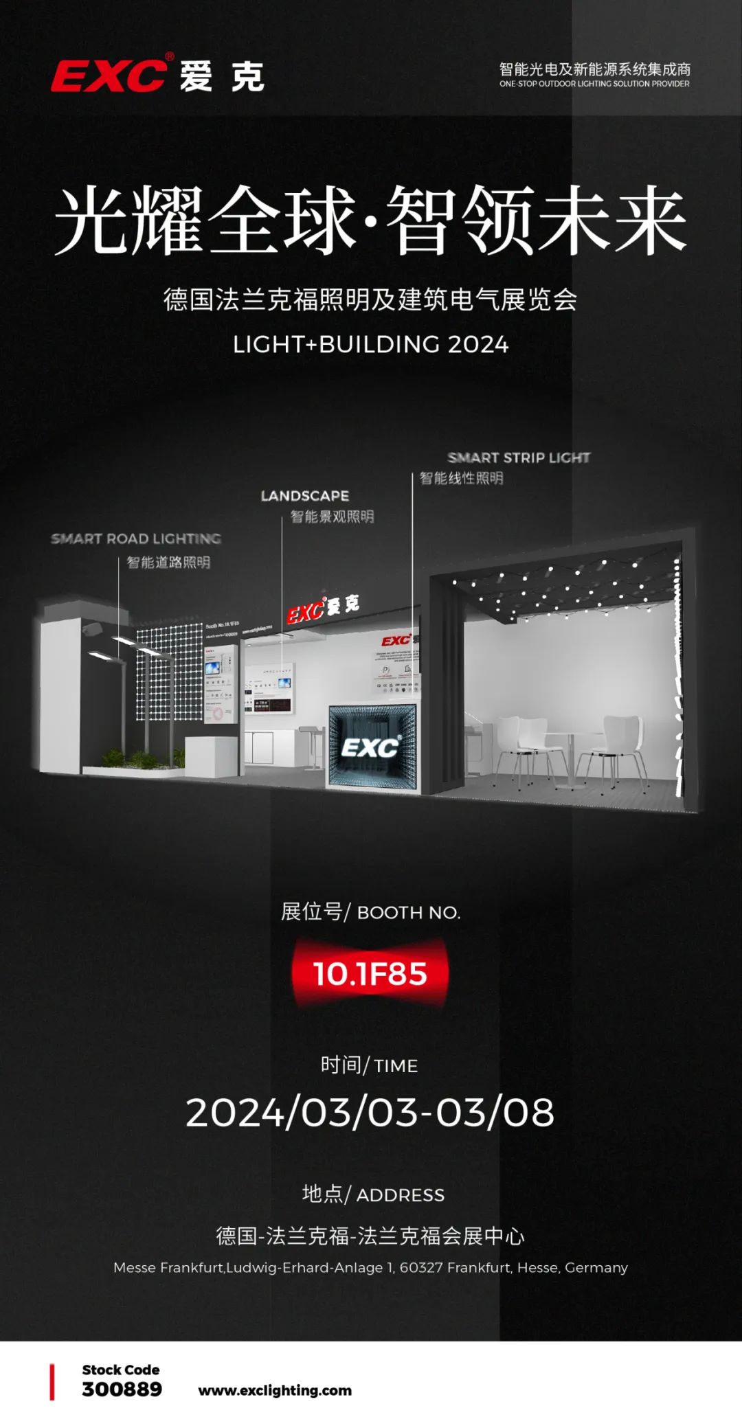 爱克股份品牌全球化进程持续加速,即将亮相2024法兰克福照明与建筑技术展(Light+Building),携智能照明创新产品及专业场景解决方案,为欧洲客户带来更多优质的照明选择和智能应用创新。