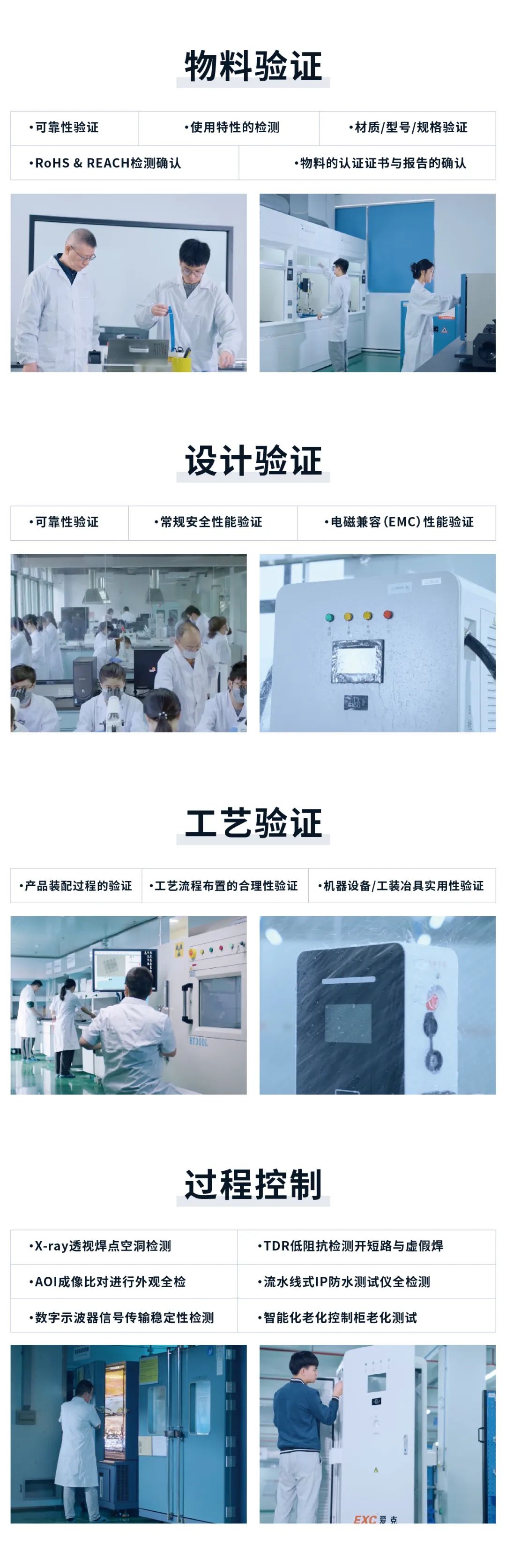爱克股份设有深圳、佛山、江门三大检测中心,秉持“质量0缺陷”的生产理念,建立了严苛的品质管控体系,以近乎苛刻的品控体系,严把产品设计生产关,层层检测,从原材料的采购到成品的出厂,每一个环节都经过精心策划和严格把关。