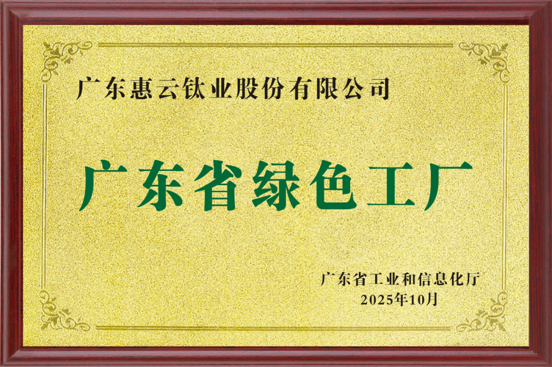 近日,经 广东省工业和信息化厅 严格评审与公示,广东 惠云钛业 股份有限公司凭借在绿色制造、节能减排与可持续发展领域的卓越实践,从众多企业中脱颖而出,正式获评2025年度广东省“绿色工厂”,全省共有211家企业获此殊荣。