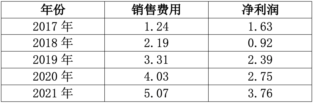 从2018年开始,火星人每年销售费用的投入都高于其当年净利润。数据显示,2018至2021年,公司净利润分别实现1.63亿元、0.92亿元、2.39亿元、2.75亿元和3.76亿元。