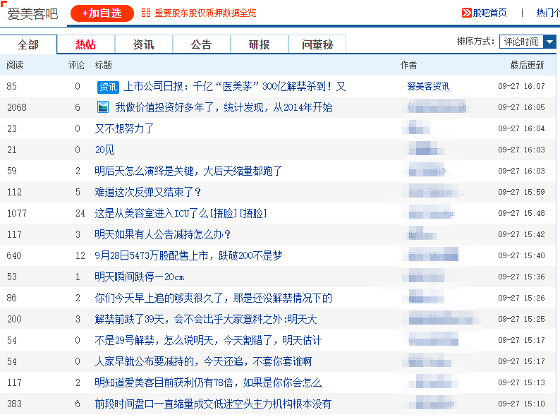 今天(9月27日)是此次限售股解禁公告发布后首个交易日,截至当天收盘,爱美客的股价跌了2.5%,市场的担心情绪还是颇为明显。