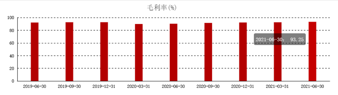 今年上半年,其毛利率为93.25%,净利率高达67.09%。这些数据用“暴利”来形容也不为过。