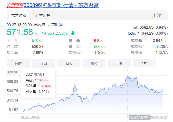 爱美客上市后大火。