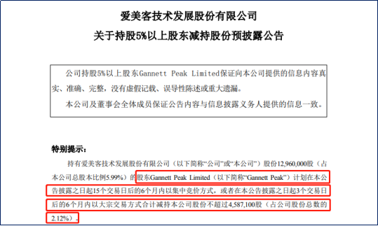 10月8日晚,爱美客公告称第三大股东Gannett Peak Limited(以下简称Gannett Peak)宣布计划减持不超过458.71万股股份,占公司股份总数的2.12%。