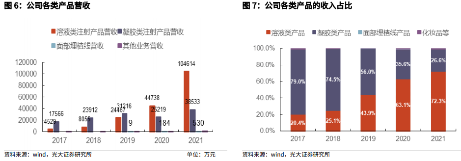 目前,爱美客的产品主要包括溶液类注射产品、凝胶类注射产品、面部埋植线。