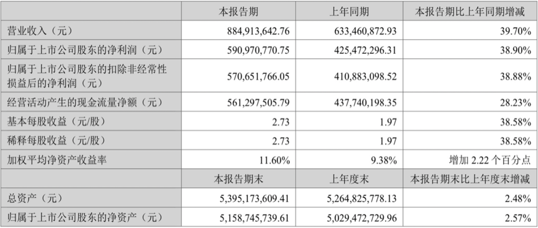 2022年上半年,爱美客实现营业收入8.85亿元,营收增长率由去年同期的161.87%下降为39.7%;归属于公司股东的净利润为5.91亿元,从去年同期的188.86%下降至38.90%。