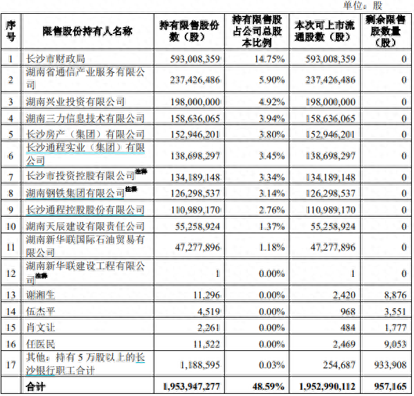 解禁数量超过1亿股的公司共17家,长沙银行、中谷物流、华菱钢铁三家公司解禁数量超过10亿股。