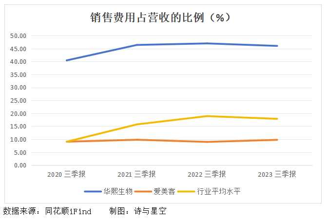 即使前三季度爱美客投入的销售费用超过2亿,同比增长了59%,占营收的比重约10%,但在行业内来说这个比例并不算高。