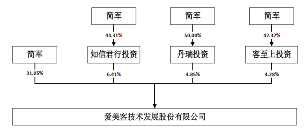 实际控制人:简军,直接持股31.05%,另外还通过知信君行投资(持股6.41%)、丹瑞投资(持股4.85%)、客至上投资(4.28%)。
