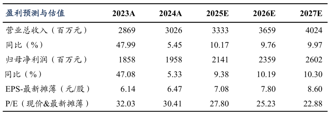 事件:2024年,公司实现营业总收入30.26亿元,同比增长5.45%,实现归母净利润19.58亿元,同比增长5.33%,实现扣非归母净利润18.72亿元,同比增长2.20%;2024年Q4季度,公司实现营业总收入6.5亿元,同比下降7%,实现归母净利润3.72亿元,同比下降15.47%,实现扣非归母净利润3.41亿元,同比下降21.67%。业绩整体符合预期。