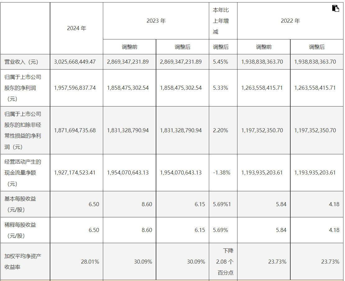 3月19日,爱美客发布公告披露,爱美客2024年实现营业收入30.26亿元,同比增速从2023年的47.99%骤降至5.45%;归母净利润19.58亿元,增速由47.08%滑落至5.33%。