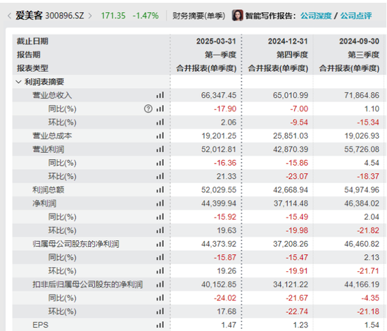 季度数据更能反映增长乏力的态势。2024年一季度,营收增速28.24%,净利润增速27.38%;二季度营收增速降至2.35%,净利润增速8.03%;三季度营收增速仅1.10%,净利润增速2.13%;到了第四季度,单季营收6.50亿元、净利润3.72亿元,同比分别下降7%和15.47%,创下上市以来首次季度双降纪录。