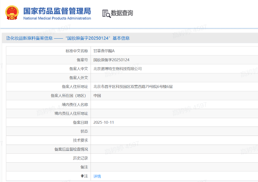 2025年10月11日,爱美客成功完成首个化妆品新原料的备案。此次备案的核心成分“甘草查尔酮A”,源自于中国特色植物,备案号为“国妆原备字20250124”。这标志着公司在化妆品领域的战略布局迈出坚实一步,展现了公司在美丽健康领域持续深耕的决心与实力。