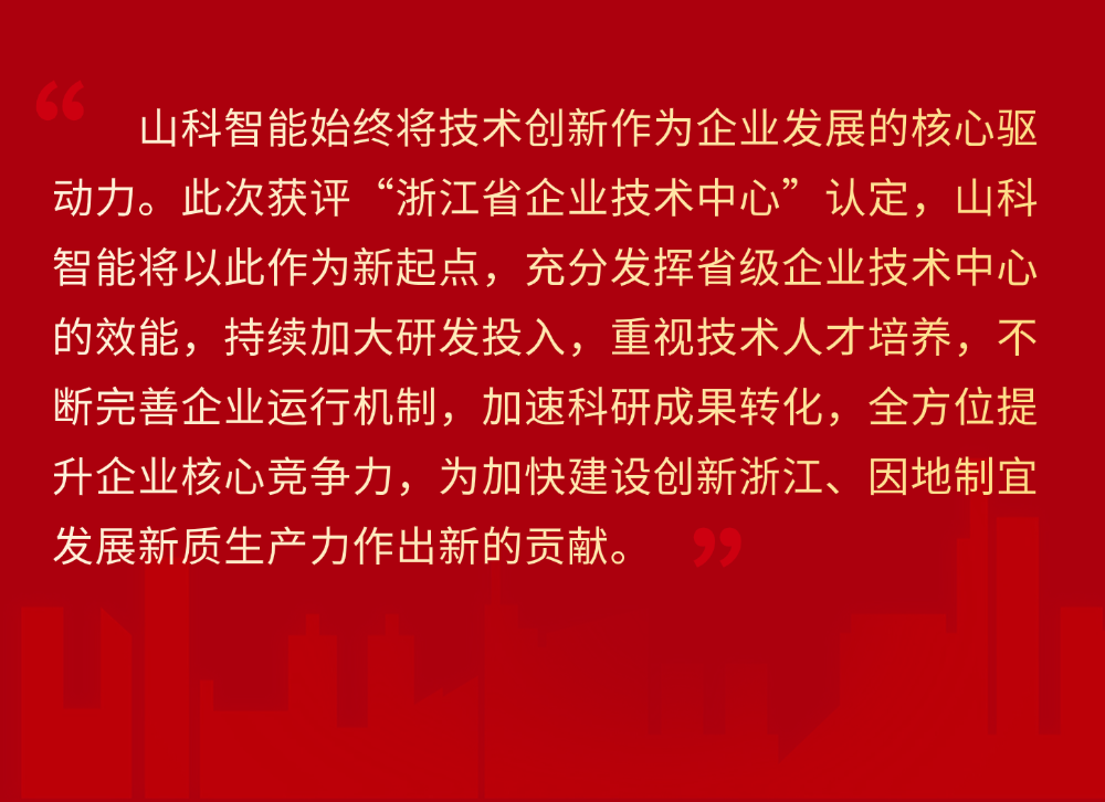 喜讯 | 山科智能荣获“浙江省企业技术中心”认定