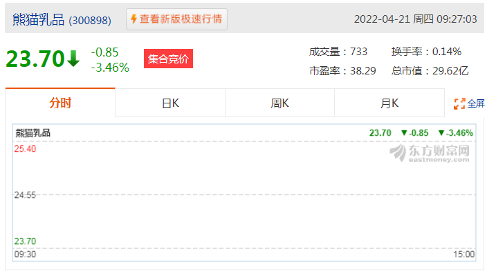 4月20日,熊猫乳品(300898.SZ)公布2022年第一季度业绩预告。