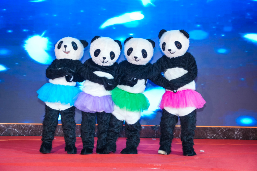 祝酒词毕,晚会及晚宴正式拉开帷幕,各类节目轮番上演、精彩纷呈。创意十足的《产品服装秀》将企业特色与时尚潮流巧妙融合,尽显品牌活力;搞怪舞蹈《芭蕾熊猫》打破传统边界,诙谐灵动的舞姿引得全场捧腹大笑;诗朗诵《熊猫赞》深情款款,诉说着熊猫人坚守初心、勇担使命的奋斗故事;《爱人啊》《广岛之恋》等歌曲婉转悠扬,《气球舞》《纤夫的爱》等舞蹈活力四射,杂技《喷火》更是惊险刺激,每一个节目都赢得全场阵阵掌声与欢呼声;合唱《熊猫三十载丹心向未来》旋律激昂,承载着全体熊猫人对企业未来的美好期许与奋进决心。