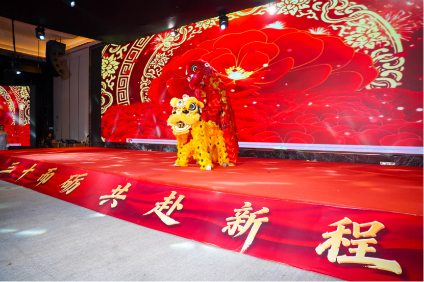 互动游戏环节趣味盎然,“寻宝记”“赶鸭子”“徒手穿裤”等趣味游戏轮番登场,大家踊跃参与、默契配合,在欢声笑语中增进协作、凝聚合力,让现场氛围持续升温。抽奖环节更是悬念迭起,三等奖、二等奖、一等奖、特等奖依次揭晓,每一次名单公布都伴随着全场的欢呼与尖叫,丰厚的奖品为大家送上了新年的满满好运与惊喜。领导们逐一登台敬酒,与员工们亲切交谈、共话家常、共绘蓝图,将晚会的温馨氛围推向顶峰。