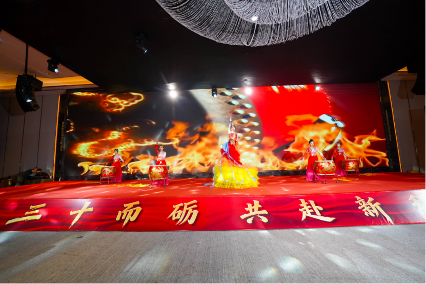 晚会正式启幕前,场外互动活动已率先升温,大家在趣味相聚中拉近情谊、凝聚共识,为这场年度盛会筑牢温暖底色。随着激昂鼓点铿锵响起,开场节目《“鼓”舞熊猫》震撼登场,强劲的节奏叩击人心,灵动的舞姿舒展活力,瞬间点燃全场氛围,生动诠释了熊猫人蓬勃向上、奋勇争先的精神风貌。