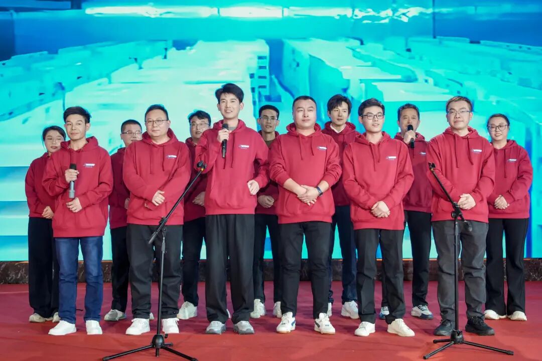 随后,全体成员共同唱响企业歌曲《爱我熊猫》,熟悉的旋律回荡全场,真挚的歌词传递心声,唱出了每一位熊猫人对企业的深厚眷恋与强烈归属感,也凝聚起同心筑梦的磅礴力量。