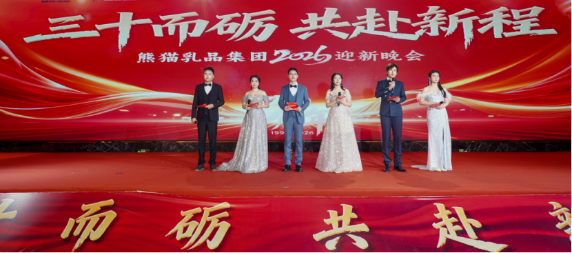欢声笑语间,时光悄然流转。这场兼具激情与温情的迎新晚会,不仅为全体员工带来了视听双重享受,更凝聚了人心、鼓舞了士气、凝聚了奋进力量。2026年的画卷已徐徐铺展,新征程承载新机遇、新使命呼唤新作为。未来,全体熊猫人将携手并肩、凝心聚力,以坚如磐石的信念、求真务实的作风、奋勇争先的斗志,向着新目标稳步迈进,共同书写熊猫乳品高质量发展的辉煌新篇章!