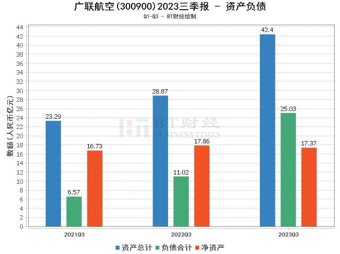 首先,我们来看看广联航空的资产负债情况。根据2023年三季报,广联航空的总资产为42.4亿元,相比上年度末的31.19亿元增长了35.95%。负债合计为25.03亿元,相比上年度末的12.73亿元增长了96.48%。资产负债率为59.04%,相比上年度末的40.8%有显著增长。这主要是由于公司收到向不特定对象发行的可转换债券确认负债所致。此外,公司的净资产为17.37亿元,相比上年度末的18.46亿元有所下滑,这主要是由于公司收购景德镇航胜少数股权冲减资本公积所致。